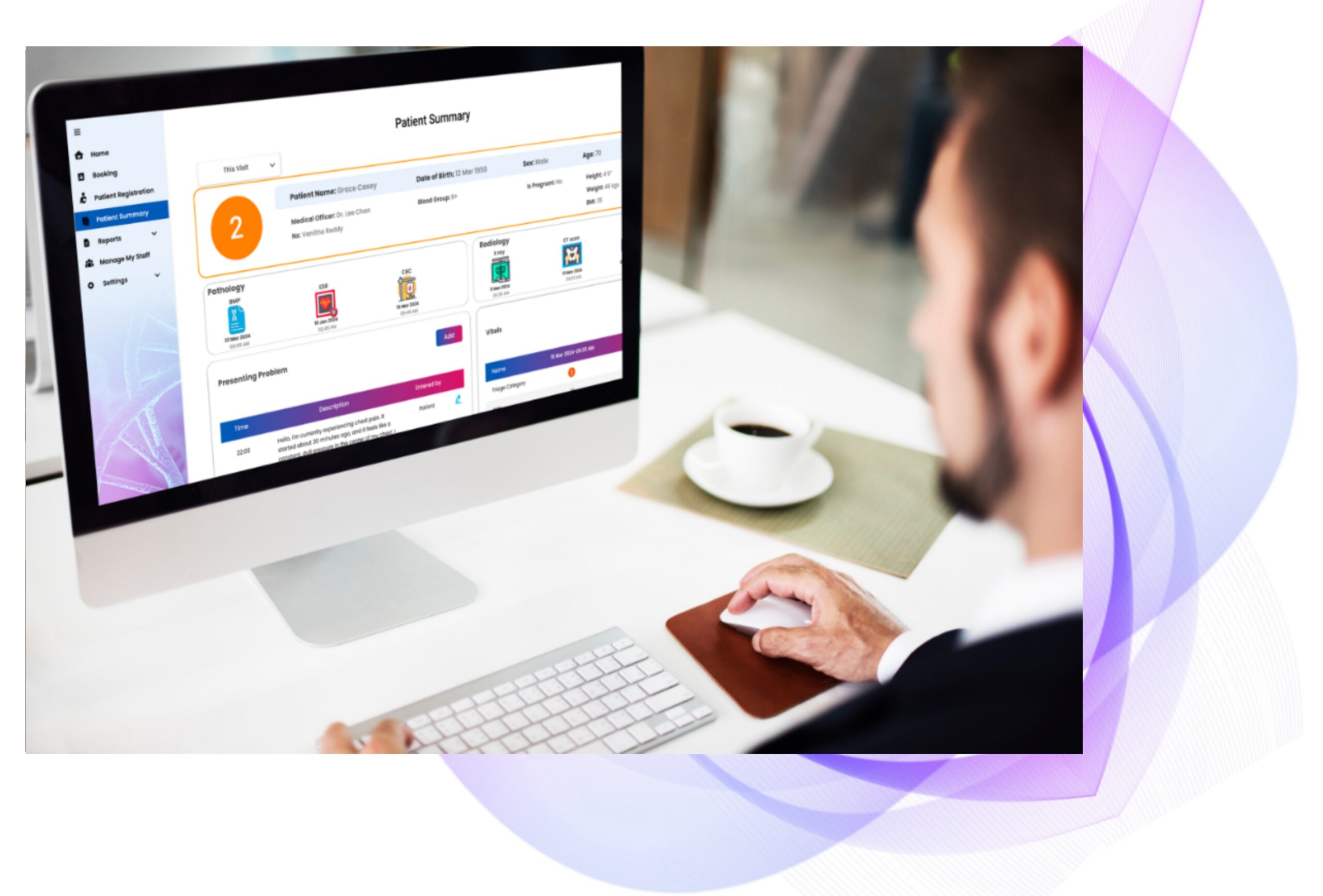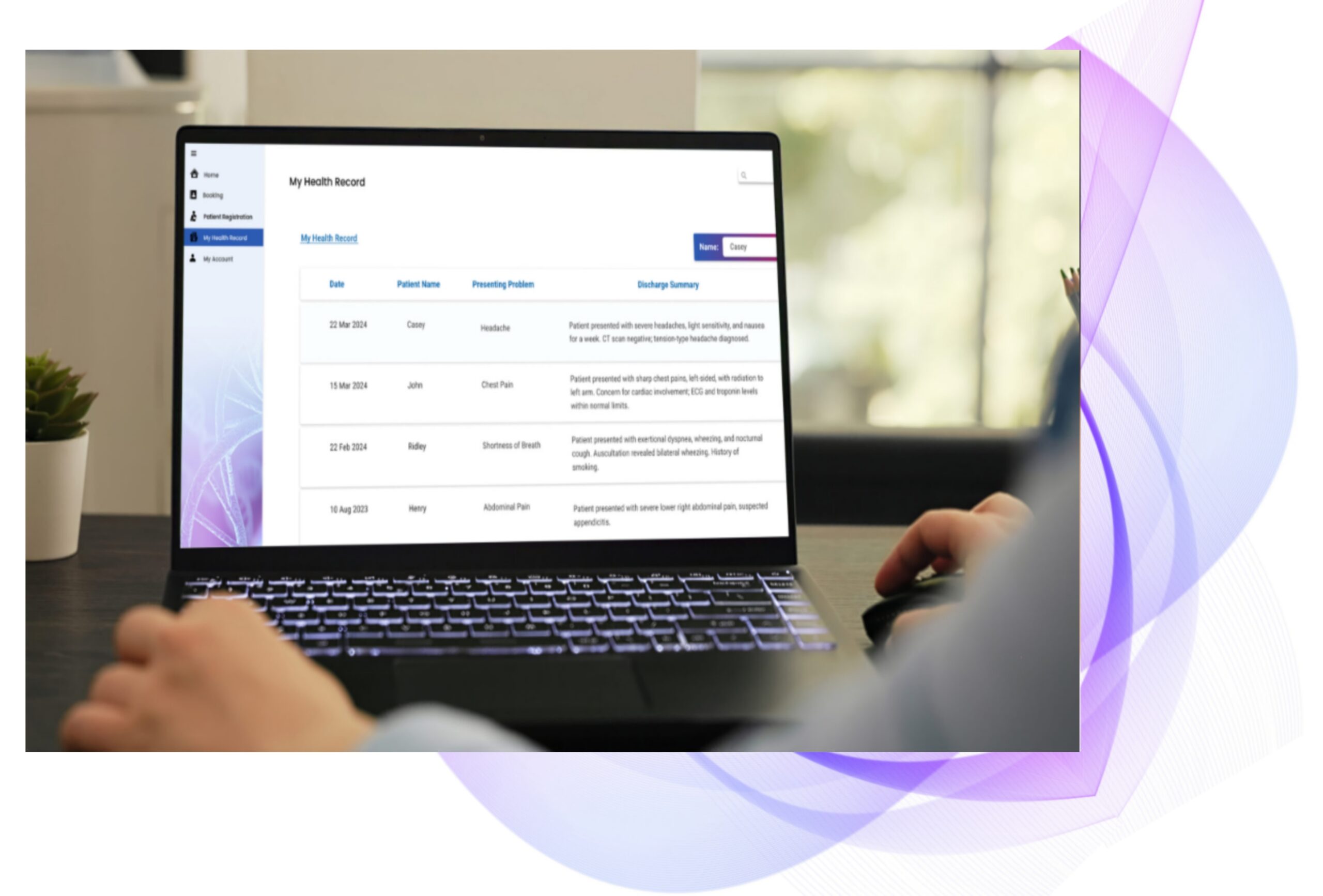 Doctor access patient summaries, detailing presenting Problem, vitals, e-referrals, e-prescriptions, specialist letters, and medications for efficient healthcare delivery.