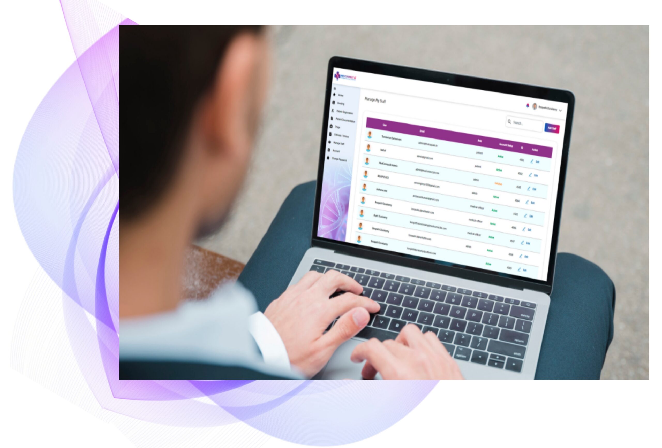 Admins can efficiently add nurses, receptionists, and doctors using our ‘Manage My Staff’ tool, tailored for clinic operations, with user-friendly functionality.